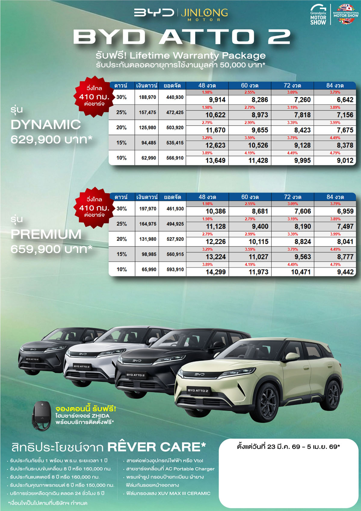 ราคาและตารางผ่อน BYD ATTO 2 ตั้งแต่วันที่ 23 มี.ค. 69 – 5 เม.ย. 69*