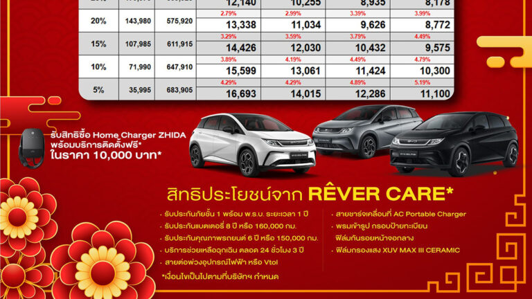 ราคาและตารางผ่อน BYD DOLPHIN13/02/202613/02/2026ราคาและตารางผ่อน BYD DOLPHIN ตั้งแต่วันนี้ - 28 กพ. 69อ่านต่อ