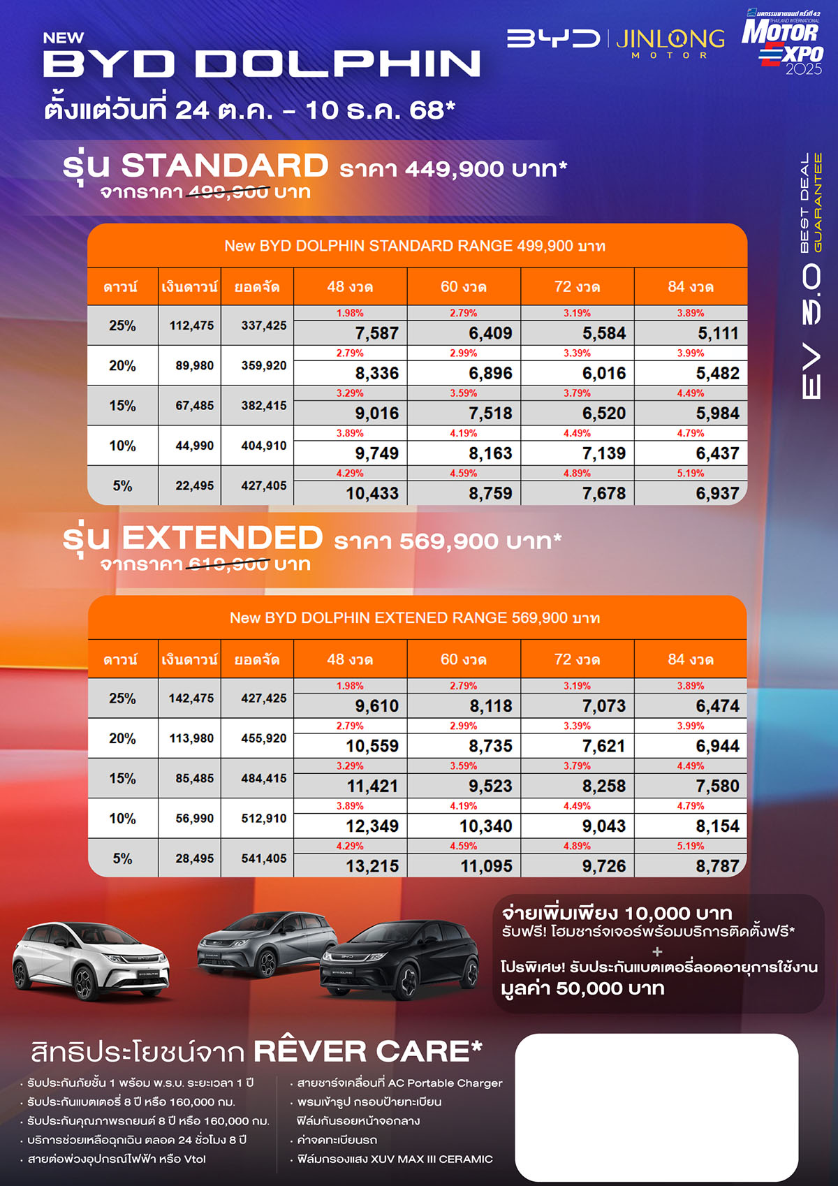 ราคาและตารางผ่อน BYD DOLPHIN (โปร Motor Expo 2025)