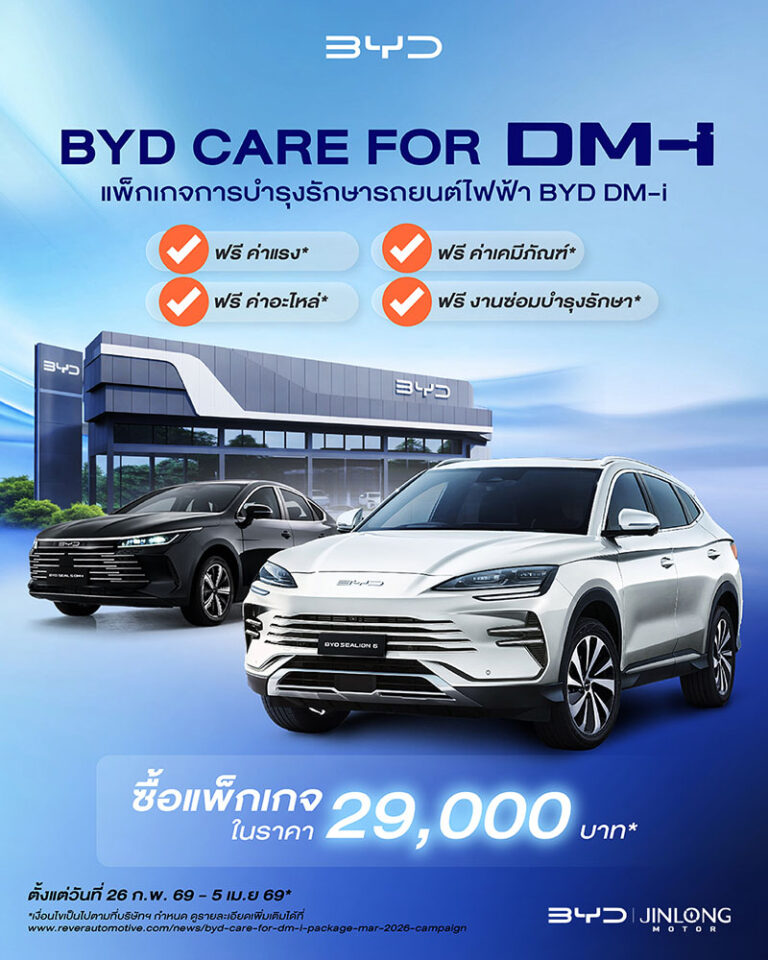 ซื้อแพ็กเกจดูแลรักษารถยนต์ไฟฟ้า BYD DM-i กับ BYD จินหลง ในราคาเพียง 29,000 บาท*