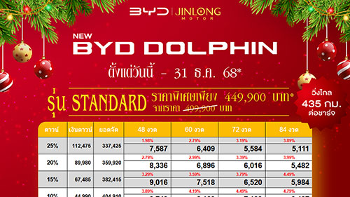 ราคาและตารางผ่อน BYD DOLPHIN ตั้งแต่วันที่ 24 ตค. – 10 ธค. 68
