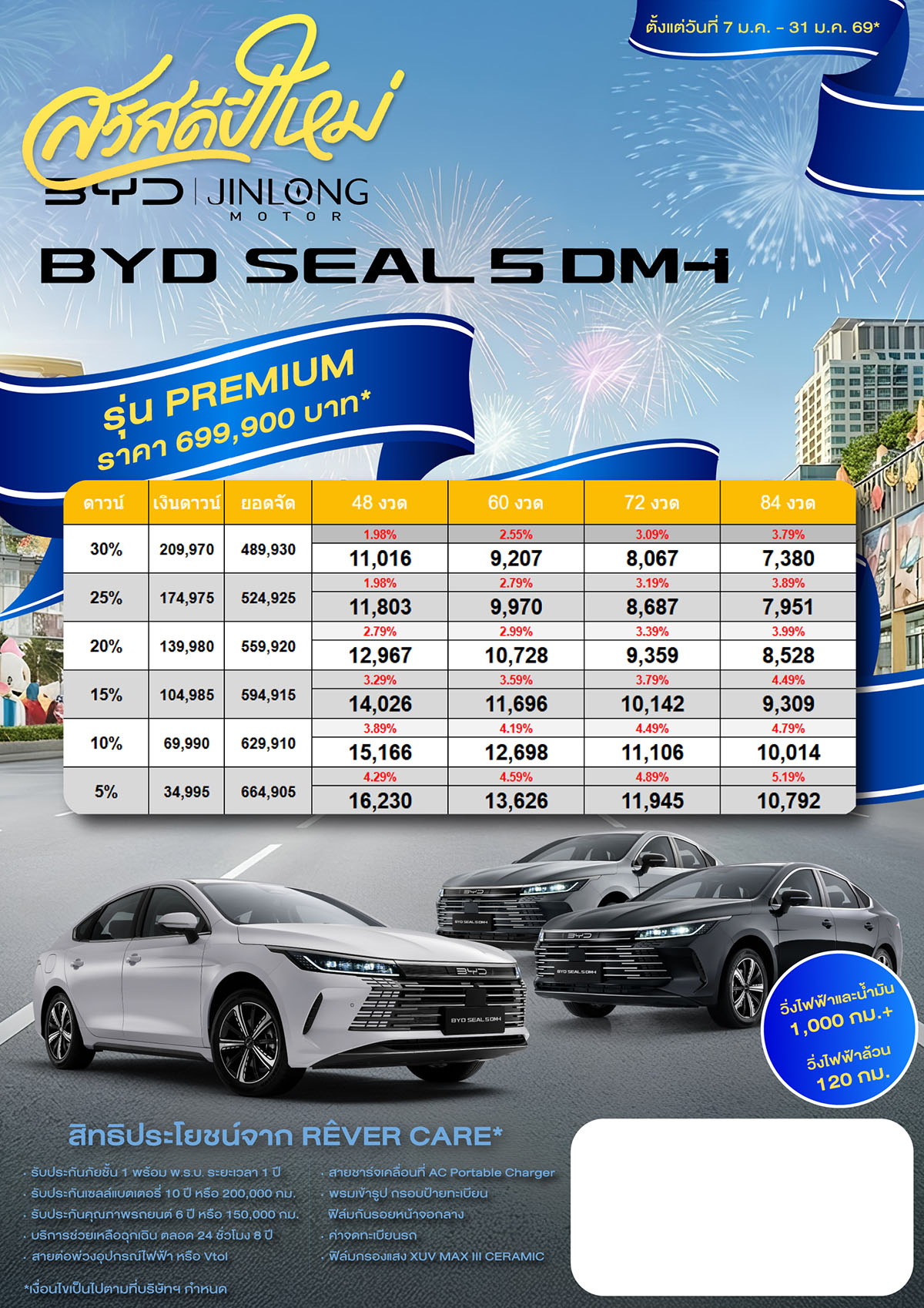 ราคาและตารางผ่อน BYD SEAL 5 DM-i รุ่น PREMIUM