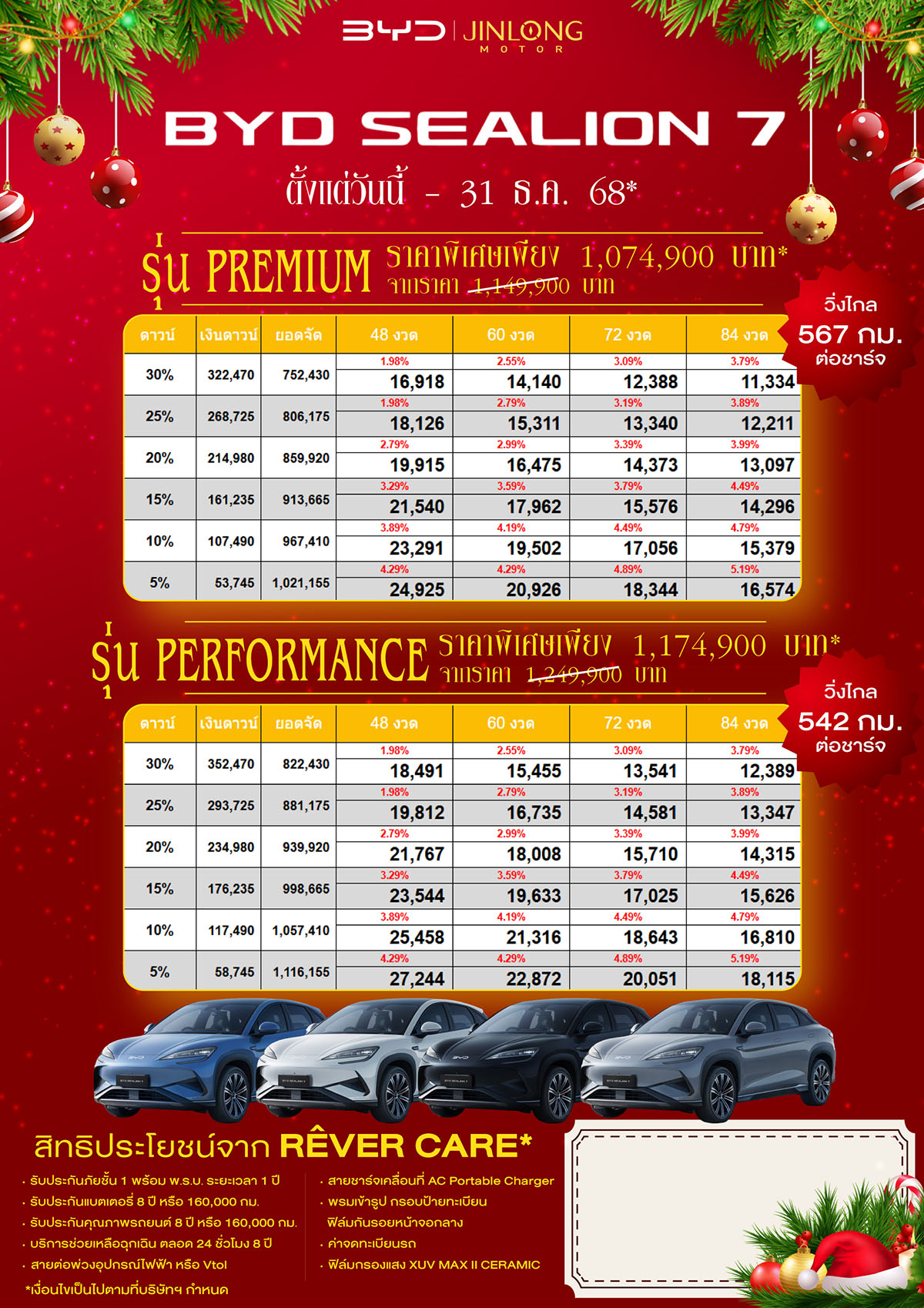 ราคาและตารางผ่อน BYD SEALION 6 DM-i ตั้งแต่วันนี้ - 31 ธค. 68