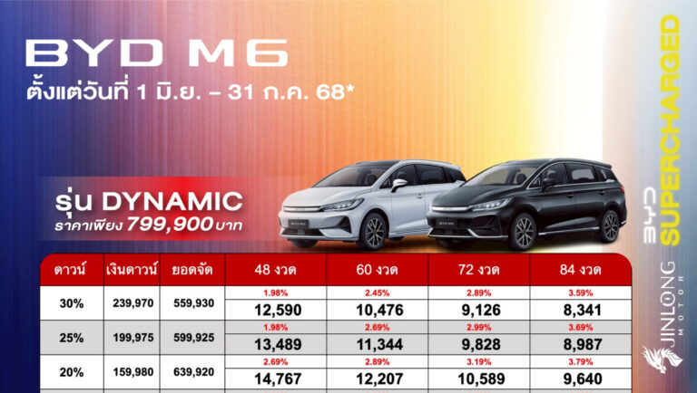 ราคาอัพเดทตั้งแต่วันที่ 1 พค. 68 – 31 พค. 68* สอบถามข้อมูลเพิ่มเติมได้ที่ บีวายดี จินหลง แจ้งวัฒนะ เรื่องราคา, เงินดาวน์, ยอดจัด