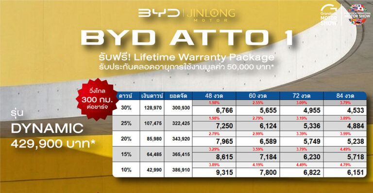 ราคาและตารางผ่อน BYD ATTO 124/03/202624/03/2026ราคาและตารางผ่อน BYD ATTO 1 ตั้งแต่วันที่ 23 มี.ค. 69 – 5 เม.ย. 69*อ่านต่อ