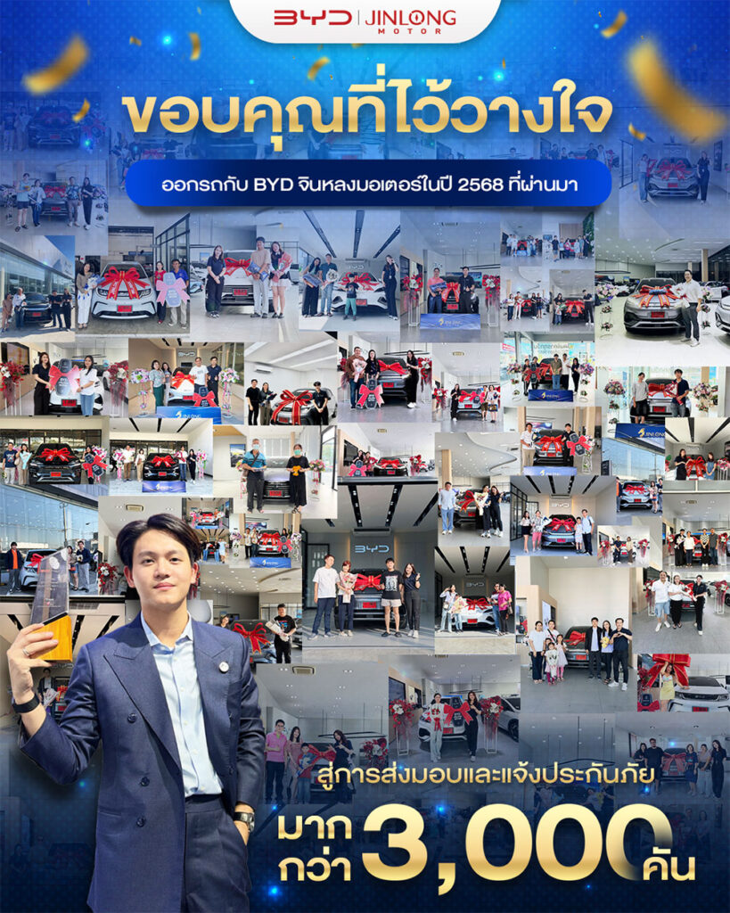 ด้วยความภาคภูมิใจอย่างยิ่ง เราสามารถส่งมอบรถยนต์ BYD พร้อมแจ้งประกันภัย ไปแล้วมากกว่า 3,000 คัน ตลอดปีที่ผ่านมา ทุกคันคือรอยยิ้ม ทุกการส่งมอบคือความตั้งใจของทีมงาน ![]()